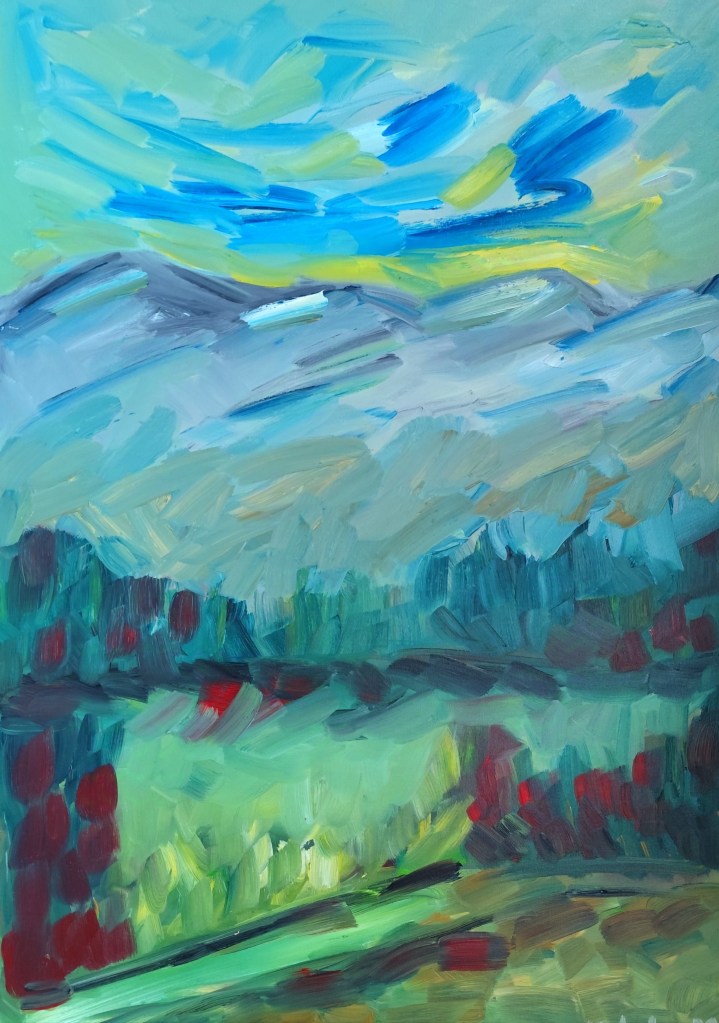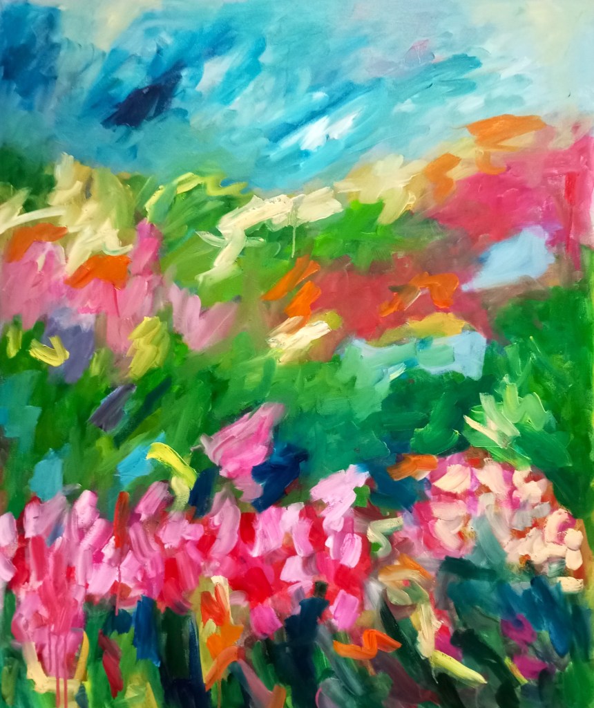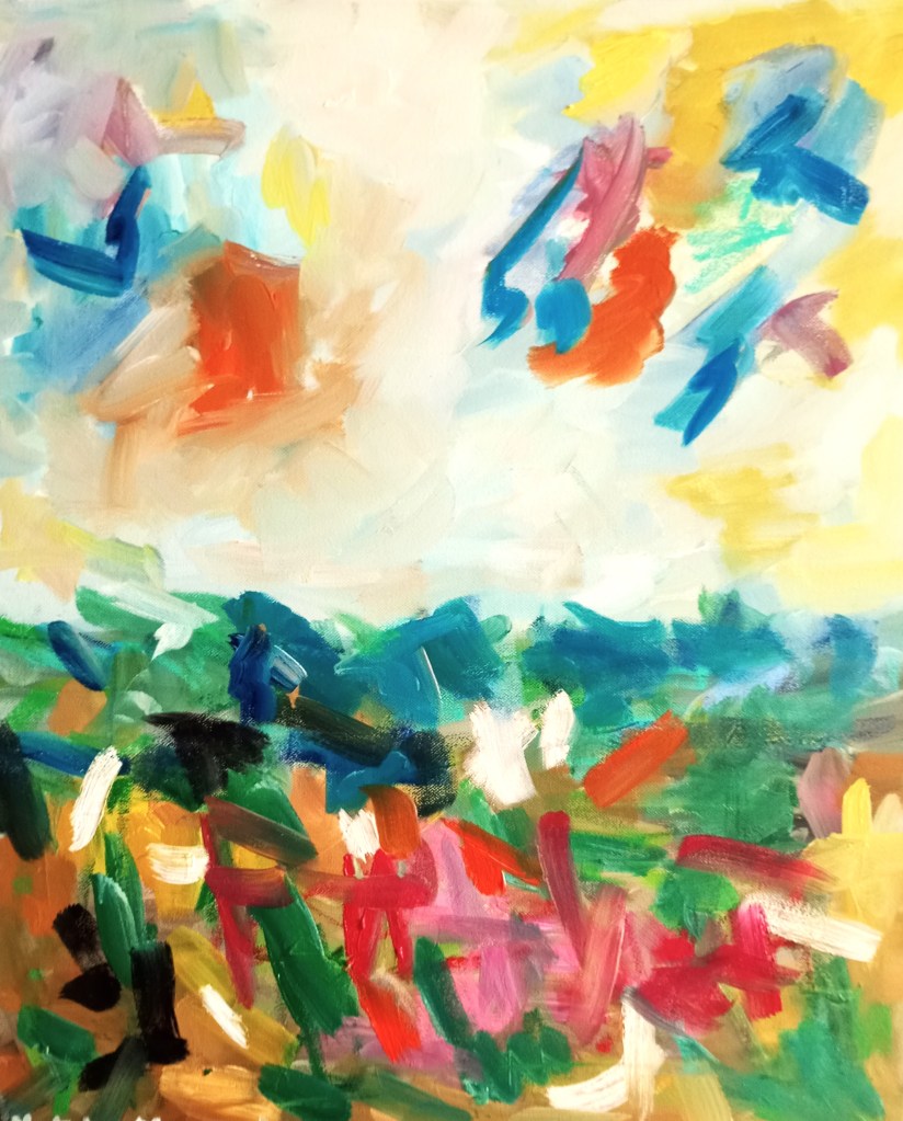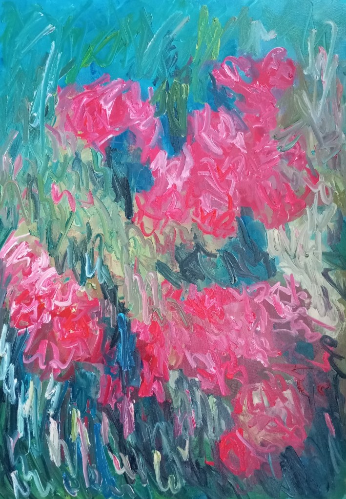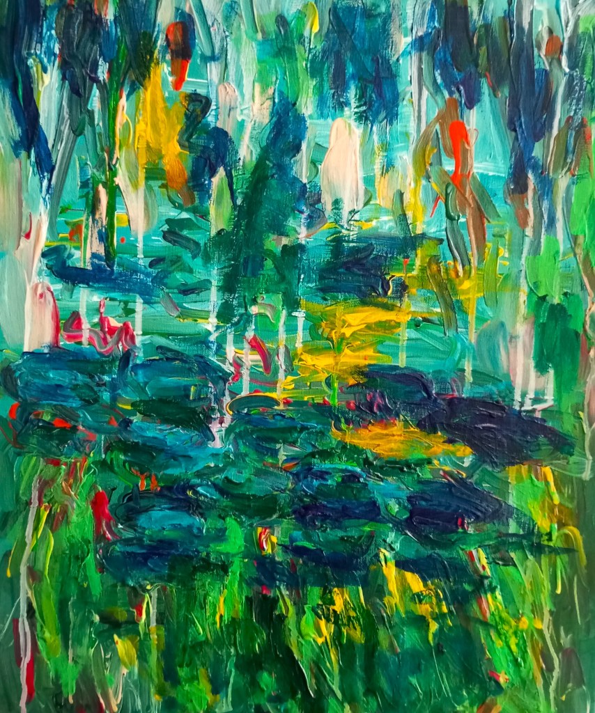 Natalya’s abstract paintings are a captivating exploration of the natural world, as she skillfully intertwines elements of nature, flowers, landscapes, and human figures. Through her unique approach, she transcends traditional representations, opting instead to express the essence of these subjects through a dynamic interplay of color and movement.