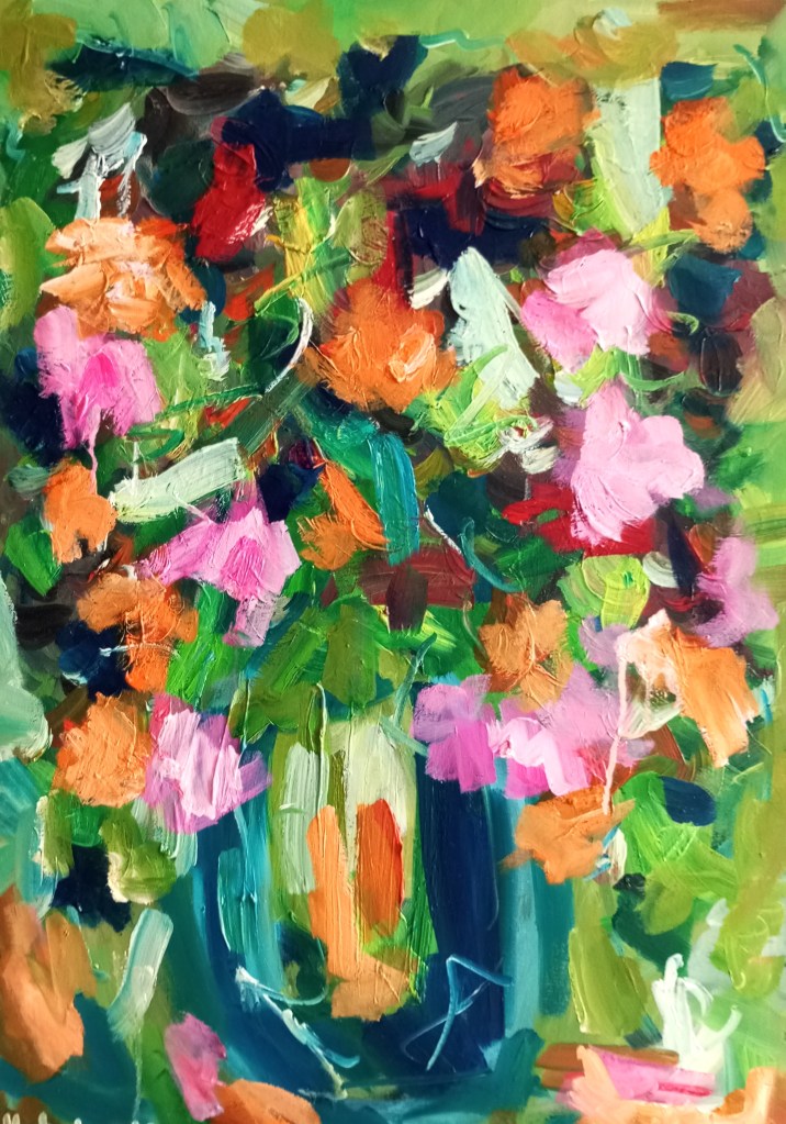 In her “Floral” series, Natalya delves into a vibrant floral motif characterized by expressive brushwork. This collection showcases a lively and eclectic blend of art, with the flower designs radiating spontaneity, vibrancy, freedom, and a rich sense of energy